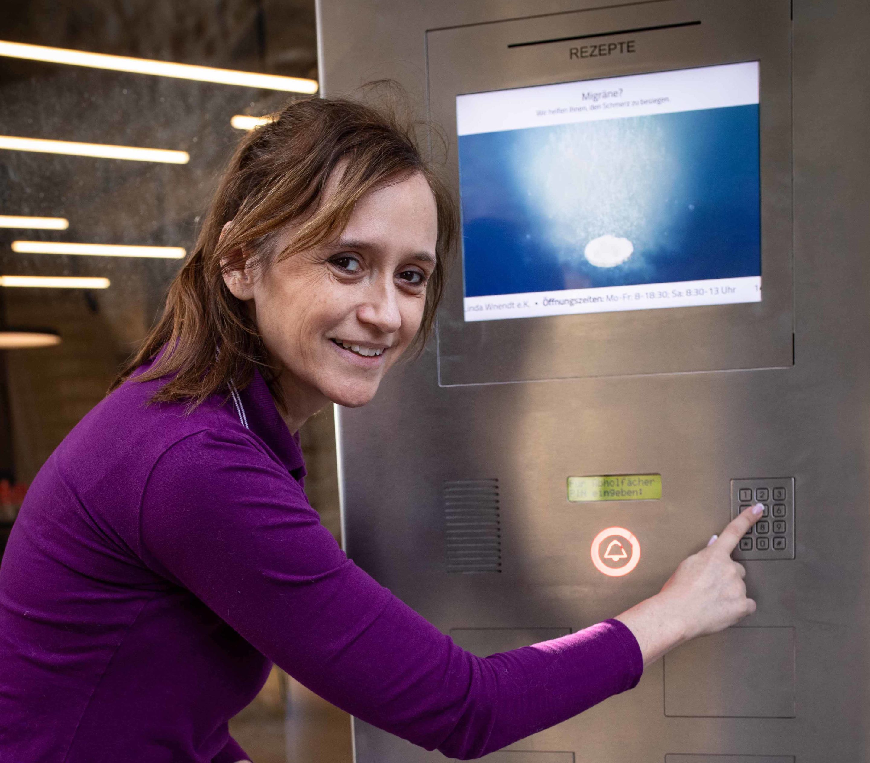 Seit unserem Umbau haben wir eine neue digitale Notdienstanlage. Diese zeigt nicht nur die tagesaktuelle Notdienst-Apotheke an, sondern ist mit einem absoluten Highlight ausgestattet: unseren digitalen Abholfächern für vorbestellte Medikamente! Ist es einmal nicht möglich die bestellten Medikamente zu unseren Öffnungszeiten bei uns abzuholen, dann kann man mit einem PIN Code zu jeder beliebigen Zeit seine Medikamente an unserem Automaten „ziehen“.